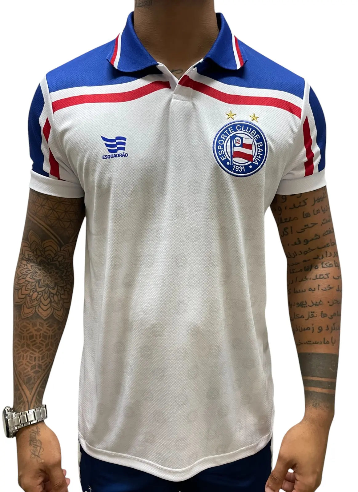 Camisa Polo Retrô 1998 Masculino Branco e Azul